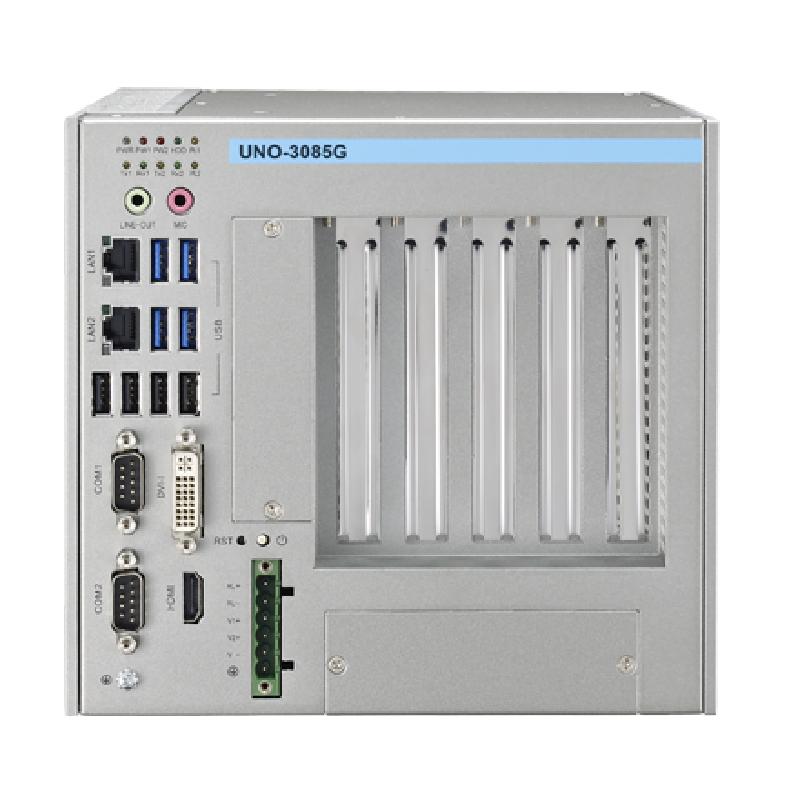 研華UNO-3085G Intel Core i-2655LE嵌入式無風(fēng)扇工業(yè)電腦,帶5個PCI(e)擴(kuò)展槽,2個Mini PCIe插槽,2個CFast插槽